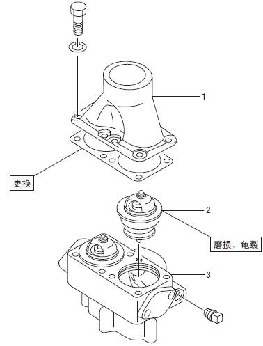 1 三菱S6R發動機恒溫器端蓋   2 三菱S6R發動機恒溫器   3 三菱S6R發動機恒溫器殼體