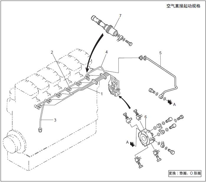 空氣管、三菱S6R柴油發(fā)動(dòng)機(jī)起動(dòng)閥、三菱S6R柴油發(fā)動(dòng)機(jī)分配閥的拆卸