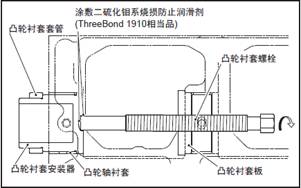 (4) 在三菱S6R柴油發動機凸輪軸襯套螺栓的前端( 和三菱S6R柴油發動機凸輪軸襯套安裝器的接觸部分) 涂敷二硫化鉬系耐高溫潤滑劑( 類似于ThreeBond 1910)。