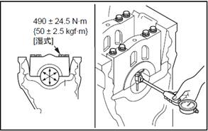 注: 三菱S6R柴油發(fā)動機(jī)主軸承瓦端蓋的緊固要領(lǐng),參照「發(fā)動機(jī)本體的組裝」的「安裝三菱S6R柴油發(fā)動機(jī)主軸承瓦端蓋」項。