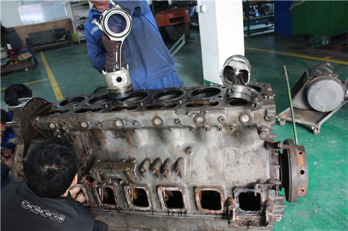 超過極限值時更換新的推力片。根據三菱S6R柴油發動機曲軸的磨損程度,在三菱S6R柴油發動機曲軸重新研磨使用時,使用加大尺寸的推力片。三菱S6R柴油發動機曲軸的研磨要領參考「發動機本體的檢測、修理」的「最后端三菱S6R柴油發動機曲軸頸的軸頸寬度研磨」項。