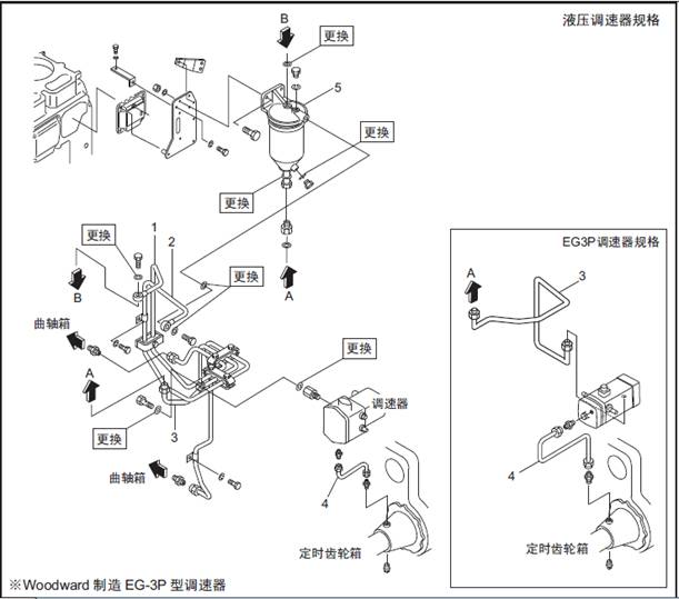 1.4 三菱S6R柴油發動機調速器潤滑油濾清器的拆卸,檢修