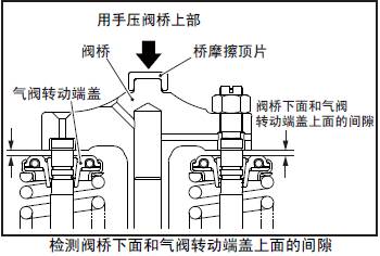 檢測閥橋下面和氣門轉動端蓋上面的間隙,掌握現在的狀況。