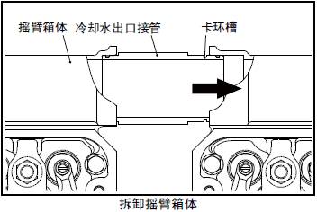 (2) 將冷卻水出口接管朝卡環槽側移動,使其和對接的三菱S12柴油發動機搖臂箱體分離。