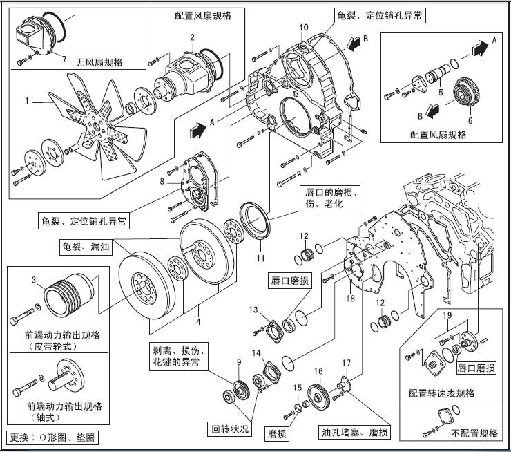 3 三菱S12柴油發(fā)動(dòng)機(jī)曲軸皮帶輪 4 三菱S12柴油發(fā)動(dòng)機(jī)減振器( 約50 kg)、隔板 5 三菱S12柴油發(fā)動(dòng)機(jī)風(fēng)扇驅(qū)動(dòng)器惰軸(三菱S12柴油發(fā)動(dòng)機(jī)風(fēng)扇配置規(guī)格) 6 三菱S12柴油發(fā)動(dòng)機(jī)風(fēng)扇驅(qū)動(dòng)器惰齒輪(三菱S12柴油發(fā)動(dòng)機(jī)風(fēng)扇配置規(guī)格) 7 呼吸器殼體(無三菱S12柴油發(fā)動(dòng)機(jī)風(fēng)扇規(guī)格)