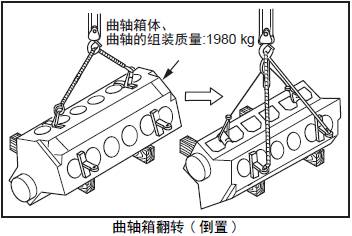 注: 起吊三菱S12柴油發動機曲軸時,為避免損傷三菱S12柴油發動機曲軸,用布吊帶或墊物進行起吊。