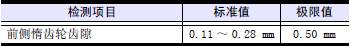 測量前側惰齒輪的齒隙,將千分表的表頭放置在齒輪節圓的圓周線上,與齒面垂直接觸,測量齒隙量,或在各齒輪的嚙合部分插入厚薄規進行測量。超過極限值時更換新的齒輪。