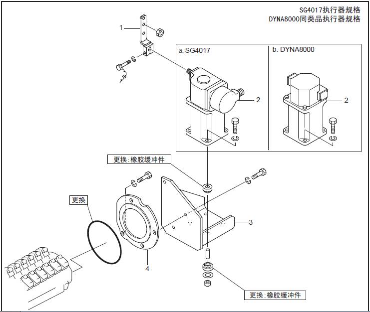 a. 東邦制作所制造SG4017型執行器 b.Woodward制造DYNA8000型執行器的拆卸、檢修