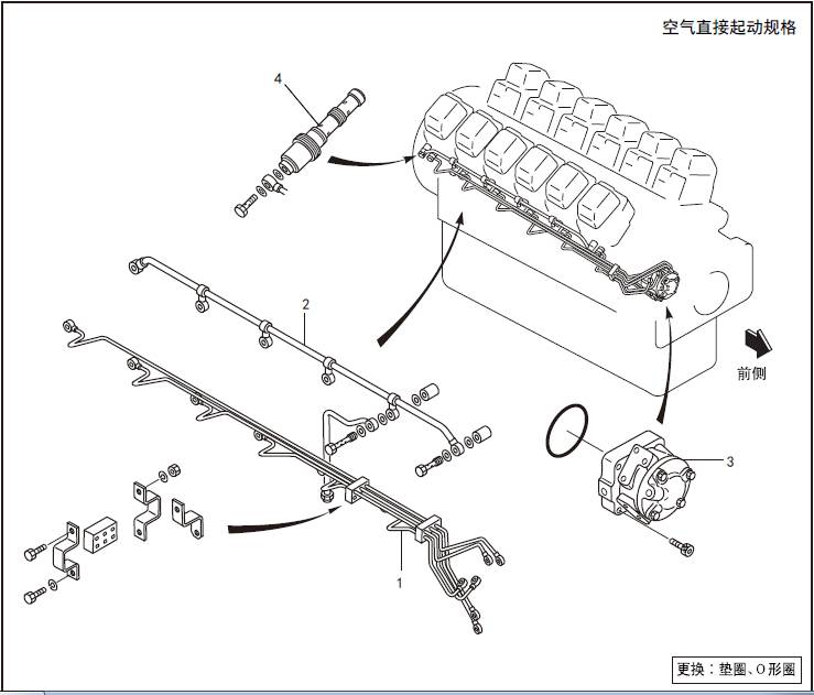 1. 拆卸三菱S12柴油發(fā)動(dòng)機(jī)空氣起動(dòng)系統(tǒng)