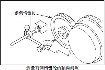 測(cè)量三菱R16柴油發(fā)動(dòng)機(jī)風(fēng)扇驅(qū)動(dòng)器三菱R16柴油發(fā)動(dòng)機(jī)惰齒輪的軸向間隙。超過(guò)極限值時(shí),確定故障部件后更換。
