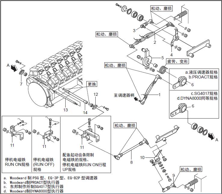a. 東邦制作所制造SG4017型執行器 b.Woodward制造DYNA8000型執行器的拆卸,檢修