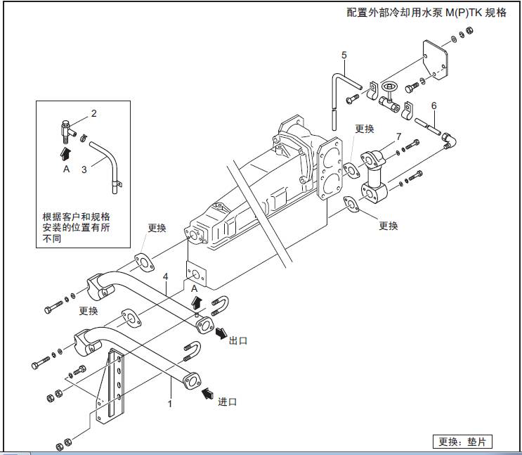 三菱S16柴油機冷卻水管的拆卸,檢修