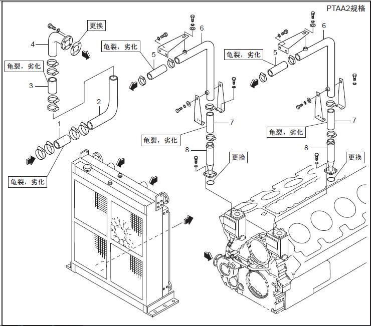外部三菱R16柴油發(fā)動機冷卻系統(tǒng)的拆卸,檢修
