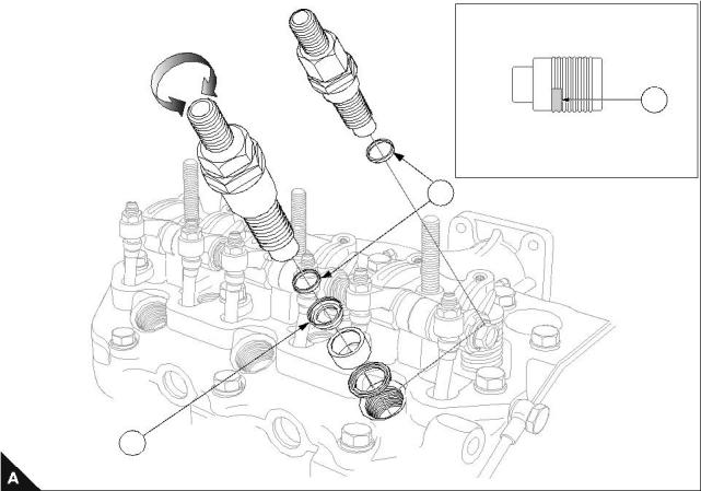1  Clean and dry the male and female threads of the atomiser and the cylinder head.