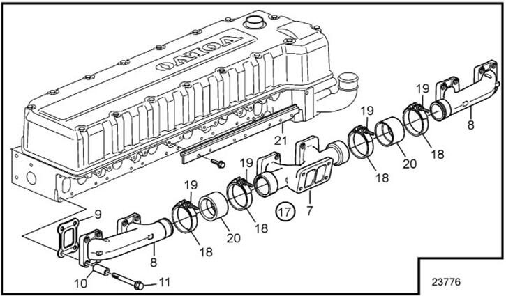沃爾沃柴油機柴油機排氣岐管配件型號清單,沃爾沃發動機機進氣和排氣系統、渦輪增壓器維修技術資料參數