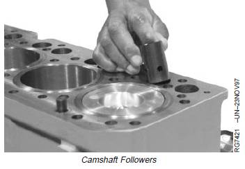 5. Lubricate camshaft followers in clean engine oil andinstall in same bore from which removed.