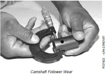2. Measure camshaft follower OD. If camshaft followerOD is less than specified, install a new follower.