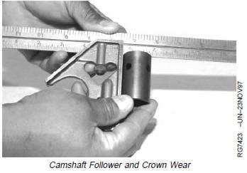 3. Check crown on follower face. If flat or concave,replace follower and check camshaft lobes for wear.(See VISUALLY INSPECT CAMSHAFT in Group 050.)