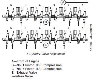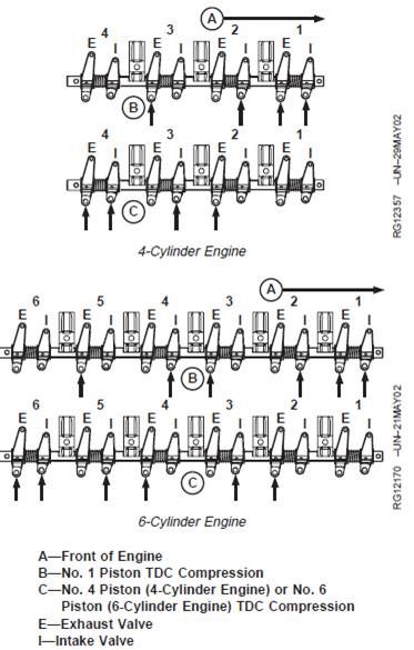 · No. 1, 3, and 5 exhaust and No. 1, 2, and 4 intakevalves on 6-cylinder engines.