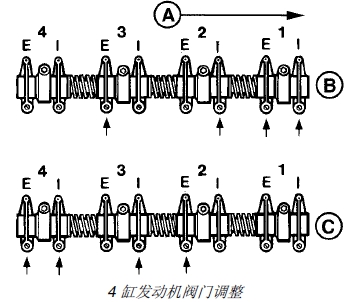 4. 調節 2 號和 4 號汽缸排氣閥門間隙和 3 號和 4 號汽缸進氣閥門間隙。