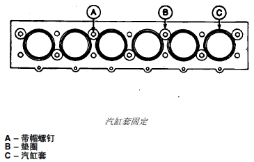 重要提示: 檢查汽缸套凸起(高于汽缸體部分)時(shí),若要獲得精確的讀數(shù),必須按技術(shù)規(guī)格的要求緊固帶帽螺釘和墊圈(詳見本章后面說明)。