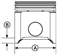 1. 在與活塞銷孔成 90°,距活塞底部 (B) 28 毫米(1.1英寸)處測量活塞裙部 (A)。記錄測量結果。