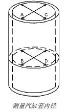 7. 比較 A、B、C、D 四個測量結果,確定汽缸套是否成錐孔或者不圓。