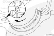 使用平頭改錐。輕輕撞擊軸承端,將其從缸體松開。然后,使用手指壓住主軸瓦并轉動曲軸,以便旋出主軸承。