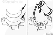 將主軸承下軸瓦裝入主軸承蓋。在主軸承內部涂覆一層清潔的康明斯ISB5.9 G CM2180發動機機油。