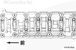 注: 主軸承蓋有位置編號。從缸體前端的 1 號開始,編號必須朝向康明斯ISB5.9 G CM2180發動機的凸輪軸側。