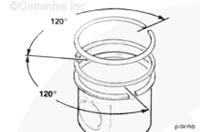 將盤車工具(零件號 3824591)插入飛輪殼中,并使其與飛輪齒圈嚙合。然后可以手持 1/2-英寸棘輪扳手或撬棍,轉動曲軸。