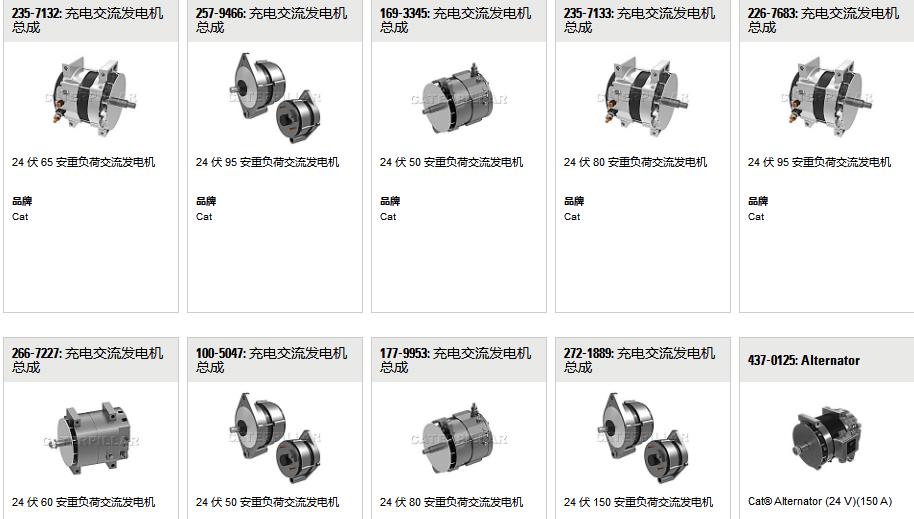 網頁中公布的卡特24v65a充電機C13 C15 C18 C27 C32 C9.3 C9.3B柴油機配件件號與圖片僅為參考,因型號與技術參數太多,沒能全部展示,具體的需求請與本司的在線客服溝通與交流。