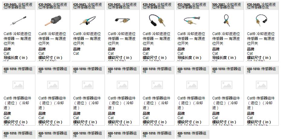 網頁中公布的卡特彼勒發動機冷卻液液位傳感器CAT液位開關配件件號與圖片僅為參考,因型號與技術參數太多,沒能全部展示,具體的需求請與本司的在線客服溝通與交流。