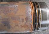 (5)吊缸檢查時,應將活塞與缸套表面上的拉缸痕跡用油石仔細磨平。損壞的活塞環必須換新。若活塞和缸套損壞嚴重,應予以換新。