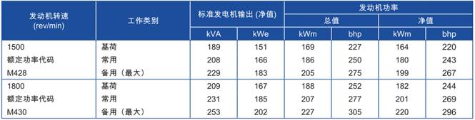 功率:于1 500rev/min時,199 kWm