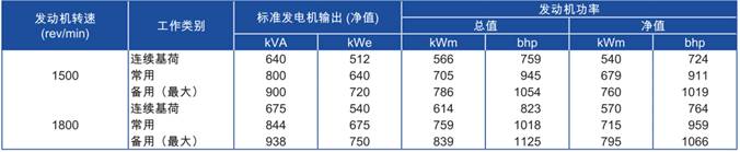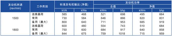 4000系列4006-23TAG2A柴油發動機,功率:1500rev/minErt685 kWm 1800rev/min 715 kWm