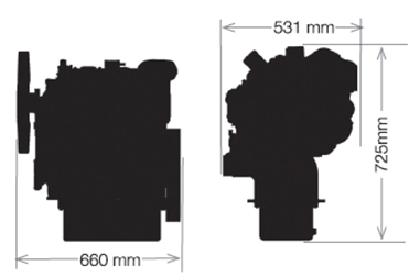 ★側(cè)裝的內(nèi)置渦輪增壓器,在提供額外動(dòng)力之余,只令組裝尺寸稍為增加,設(shè)備安裝工作因而變得更輕松。