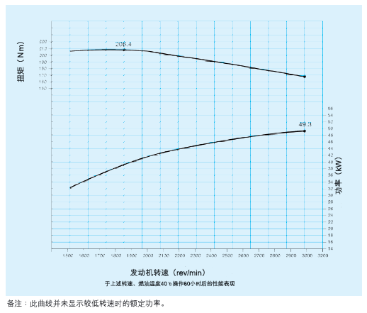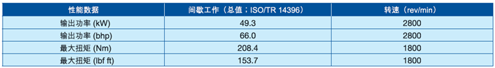 于2800 rpm時,功率達49.3 kW,66.0 bhp