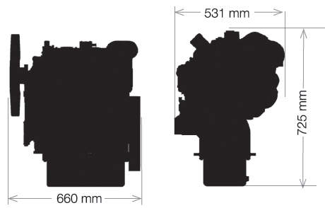 ★側裝的內置渦輪增壓器,在提供額外動力之余,只令組裝尺寸稍為增加,設備安裝工作因而變得更輕松。