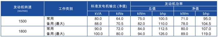 上表所有額定功率數據均為ISO/TR 14396/IS0 8528條件下操作時數據。