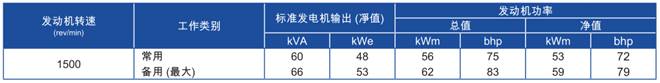 上表所有額定功率數據均為ISO/TR 14396/IS0 8528條件下操作時數據。