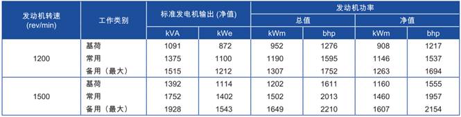 功率:于1200rev/min時,1263 kWm