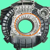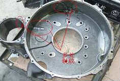 造成此故障的現象:發動機的飛輪殼開裂(如下圖所示),有時表現的現象為發動機后部漏油,進一步觀察,主要原因是飛輪殼開裂所致。 造成此故障的原因分析:主要原因是整車傳動系統振動過大,導致飛輪殼被震裂 此故障的維修解決方法:更換飛輪殼、整車傳動軸