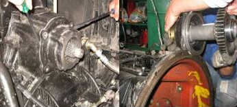 注意事項:   切不可強拆輸出軸總成,否則將損壞輸出軸總成、齒輪、軸承及飛輪殼等,造成嚴重后果;變速箱可不用完全拆下,松開固定螺栓拔出5cm即可;拆裝輸出軸總成必須輕拿輕放,手工裝配到位,保證齒輪嚙合和不損壞軸承.