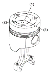 當(dāng)活塞裝配正確時(shí),刻印在連桿頂部的標(biāo)識(shí) 會(huì)和刻印在連桿上連桿和連桿蓋的裝配記號(hào)處于同一側(cè)。(106T系列除外)