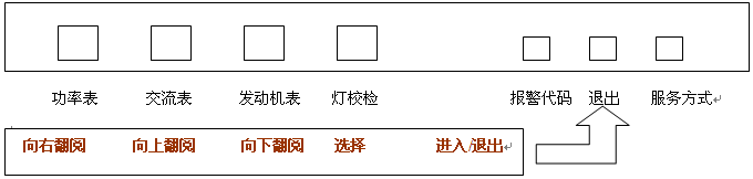 當發電機組控制器+(GSC+),置于服務方式時,其正面的小鍵盤開關上有替換的功能,這些功能圖示如下: