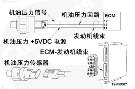 OPS 監測機油壓力并通過發動機線束的觸針 12 將此信息傳送至 ECM。