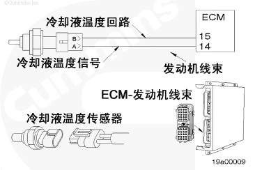 ECM 利用 CTS 監測發動機冷卻液溫度。ECM 將冷卻液溫度用于發動機保護系統和供油控制。