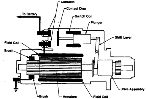 l          外殼和磁場線圈、轉子和換向環、馬達驅動機構、電磁接觸器和切換桿、碳刷
