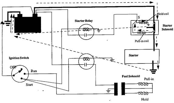l          當起動開關閉合時,電路流經電磁閥吸入線圈和保持線圈、磁場線圈和轉子線圈。
